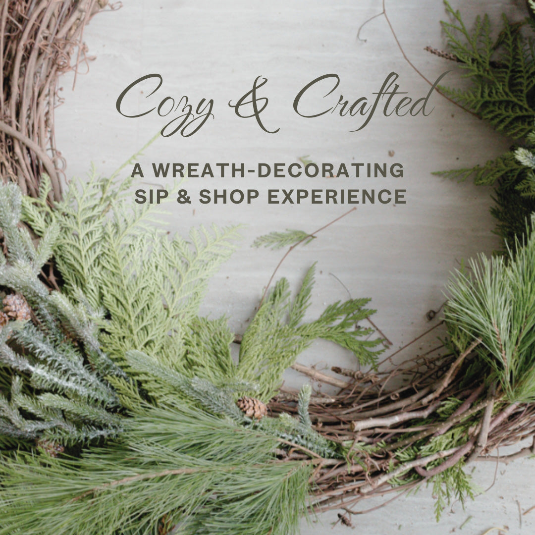 Join us for an enchanting evening of holiday cheer as we gather to create beautiful seasonal wreaths, sip festive cocktails, and shop thoughtfully curated finds featuring homewares, women’s accessories, and elevated gifts.